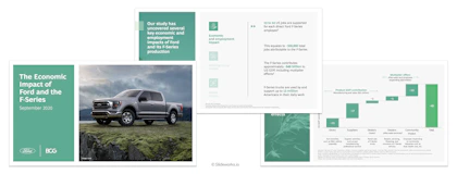 29 page presentation examining the importance of the F-Series and Ford to the US economy through the lenses of employment, GDP, and manufacturing impact, as well as through comparisons to other US products and companies. More externally focused than actual client project.