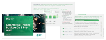 You can find similar lists of presentations for McKinsey here and Bain here. Or see an insider guide on how BCG creates slides in our post on slide creation.