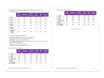 Another example of a larger firm is Accenture. They too price at a slightly lower level than McKinsey, BCG, and Bain but use a similar distinction between more analyst-level employees and partners. In this rate card, Accenture prices from £190 per day for a "Follow" role (i.e., an analyst) and up to £2240 per day for a "Set strategy, inspire, mobilise" role (i.e., partner).