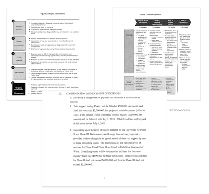 This example is the contract for Bain's project for The University of California, Berkeley on operational excellence and cost savings. You can see the final report from the project here.