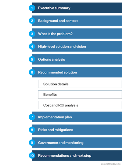 Create compelling business cases with proven frameworks, best-practice slide layouts and full-length examples.